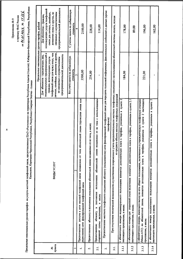 "ОБ УТВЕРЖДЕНИИ ПРЕДЕЛЬНЫХ МАКСИМАЛЬНЫХ УРОВНЕЙ ТАРИФОВ НА УСЛУГИ МЕСТНОЙ ТЕЛЕФОННОЙ СВЯЗИ, УСЛУГУ ПО ПРЕДОСТАВЛЕНИЮ ВНУТРИЗОНОВОГО ТЕЛЕФОННОГО СОЕДИНЕНИЯ АБОНЕНТУ (ПОЛЬЗОВАТЕЛЮ) СЕТИ ФИКСИРОВАННОЙ ТЕЛЕФОННОЙ СВЯЗИ ДЛЯ ПЕРЕДАЧИ ГОЛОСОВОЙ ИНФОРМАЦИИ, ФАКСИМИЛЬНЫХ СООБЩЕНИЙ И ДАННЫХ И ТАРИФОВ НА УСЛУГУ ПО ПЕРЕДАЧЕ ВНУТРЕННЕЙ ТЕЛЕГРАММЫ, ПРЕДОСТАВЛЯЕМЫЕ ПАО "РОСТЕЛЕКОМ"