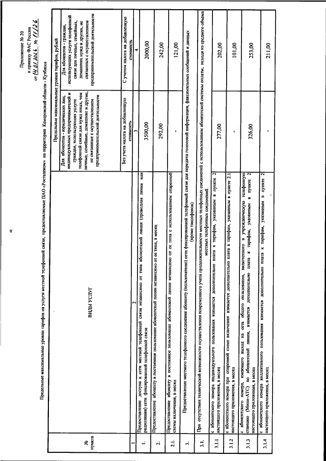 "ОБ УТВЕРЖДЕНИИ ПРЕДЕЛЬНЫХ МАКСИМАЛЬНЫХ УРОВНЕЙ ТАРИФОВ НА УСЛУГИ МЕСТНОЙ ТЕЛЕФОННОЙ СВЯЗИ, УСЛУГУ ПО ПРЕДОСТАВЛЕНИЮ ВНУТРИЗОНОВОГО ТЕЛЕФОННОГО СОЕДИНЕНИЯ АБОНЕНТУ (ПОЛЬЗОВАТЕЛЮ) СЕТИ ФИКСИРОВАННОЙ ТЕЛЕФОННОЙ СВЯЗИ ДЛЯ ПЕРЕДАЧИ ГОЛОСОВОЙ ИНФОРМАЦИИ, ФАКСИМИЛЬНЫХ СООБЩЕНИЙ И ДАННЫХ И ТАРИФОВ НА УСЛУГУ ПО ПЕРЕДАЧЕ ВНУТРЕННЕЙ ТЕЛЕГРАММЫ, ПРЕДОСТАВЛЯЕМЫЕ ПАО "РОСТЕЛЕКОМ"