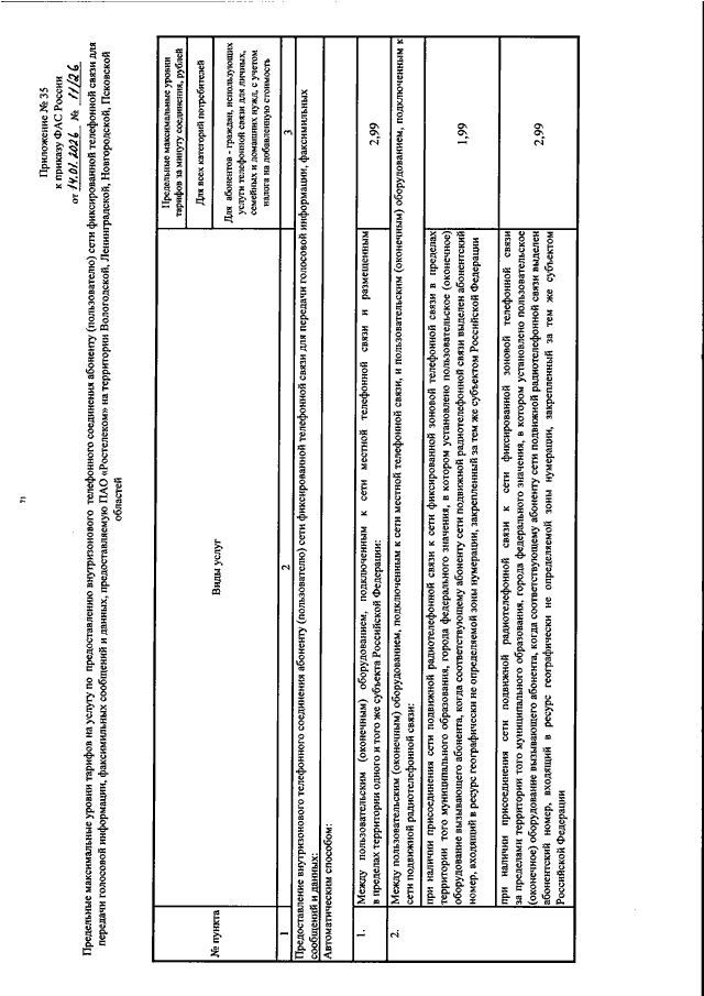"ОБ УТВЕРЖДЕНИИ ПРЕДЕЛЬНЫХ МАКСИМАЛЬНЫХ УРОВНЕЙ ТАРИФОВ НА УСЛУГИ МЕСТНОЙ ТЕЛЕФОННОЙ СВЯЗИ, УСЛУГУ ПО ПРЕДОСТАВЛЕНИЮ ВНУТРИЗОНОВОГО ТЕЛЕФОННОГО СОЕДИНЕНИЯ АБОНЕНТУ (ПОЛЬЗОВАТЕЛЮ) СЕТИ ФИКСИРОВАННОЙ ТЕЛЕФОННОЙ СВЯЗИ ДЛЯ ПЕРЕДАЧИ ГОЛОСОВОЙ ИНФОРМАЦИИ, ФАКСИМИЛЬНЫХ СООБЩЕНИЙ И ДАННЫХ И ТАРИФОВ НА УСЛУГУ ПО ПЕРЕДАЧЕ ВНУТРЕННЕЙ ТЕЛЕГРАММЫ, ПРЕДОСТАВЛЯЕМЫЕ ПАО "РОСТЕЛЕКОМ"