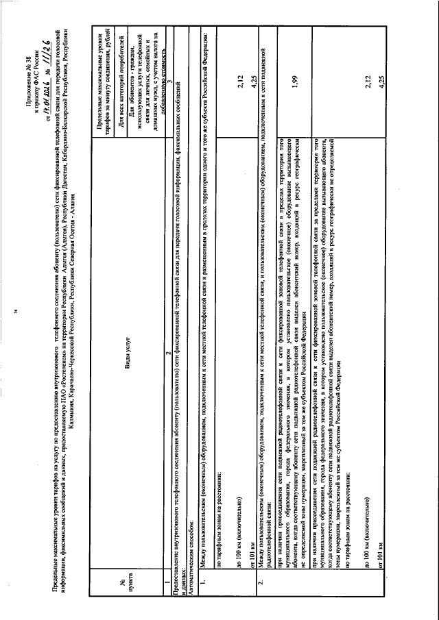 "ОБ УТВЕРЖДЕНИИ ПРЕДЕЛЬНЫХ МАКСИМАЛЬНЫХ УРОВНЕЙ ТАРИФОВ НА УСЛУГИ МЕСТНОЙ ТЕЛЕФОННОЙ СВЯЗИ, УСЛУГУ ПО ПРЕДОСТАВЛЕНИЮ ВНУТРИЗОНОВОГО ТЕЛЕФОННОГО СОЕДИНЕНИЯ АБОНЕНТУ (ПОЛЬЗОВАТЕЛЮ) СЕТИ ФИКСИРОВАННОЙ ТЕЛЕФОННОЙ СВЯЗИ ДЛЯ ПЕРЕДАЧИ ГОЛОСОВОЙ ИНФОРМАЦИИ, ФАКСИМИЛЬНЫХ СООБЩЕНИЙ И ДАННЫХ И ТАРИФОВ НА УСЛУГУ ПО ПЕРЕДАЧЕ ВНУТРЕННЕЙ ТЕЛЕГРАММЫ, ПРЕДОСТАВЛЯЕМЫЕ ПАО "РОСТЕЛЕКОМ"