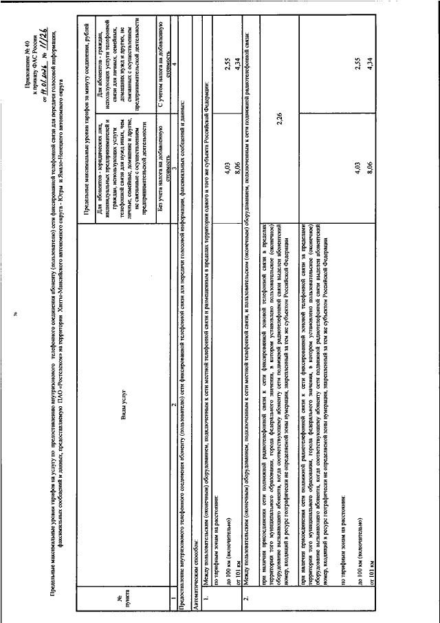 "ОБ УТВЕРЖДЕНИИ ПРЕДЕЛЬНЫХ МАКСИМАЛЬНЫХ УРОВНЕЙ ТАРИФОВ НА УСЛУГИ МЕСТНОЙ ТЕЛЕФОННОЙ СВЯЗИ, УСЛУГУ ПО ПРЕДОСТАВЛЕНИЮ ВНУТРИЗОНОВОГО ТЕЛЕФОННОГО СОЕДИНЕНИЯ АБОНЕНТУ (ПОЛЬЗОВАТЕЛЮ) СЕТИ ФИКСИРОВАННОЙ ТЕЛЕФОННОЙ СВЯЗИ ДЛЯ ПЕРЕДАЧИ ГОЛОСОВОЙ ИНФОРМАЦИИ, ФАКСИМИЛЬНЫХ СООБЩЕНИЙ И ДАННЫХ И ТАРИФОВ НА УСЛУГУ ПО ПЕРЕДАЧЕ ВНУТРЕННЕЙ ТЕЛЕГРАММЫ, ПРЕДОСТАВЛЯЕМЫЕ ПАО "РОСТЕЛЕКОМ"