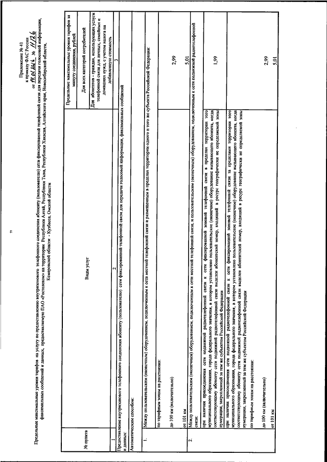 "ОБ УТВЕРЖДЕНИИ ПРЕДЕЛЬНЫХ МАКСИМАЛЬНЫХ УРОВНЕЙ ТАРИФОВ НА УСЛУГИ МЕСТНОЙ ТЕЛЕФОННОЙ СВЯЗИ, УСЛУГУ ПО ПРЕДОСТАВЛЕНИЮ ВНУТРИЗОНОВОГО ТЕЛЕФОННОГО СОЕДИНЕНИЯ АБОНЕНТУ (ПОЛЬЗОВАТЕЛЮ) СЕТИ ФИКСИРОВАННОЙ ТЕЛЕФОННОЙ СВЯЗИ ДЛЯ ПЕРЕДАЧИ ГОЛОСОВОЙ ИНФОРМАЦИИ, ФАКСИМИЛЬНЫХ СООБЩЕНИЙ И ДАННЫХ И ТАРИФОВ НА УСЛУГУ ПО ПЕРЕДАЧЕ ВНУТРЕННЕЙ ТЕЛЕГРАММЫ, ПРЕДОСТАВЛЯЕМЫЕ ПАО "РОСТЕЛЕКОМ"