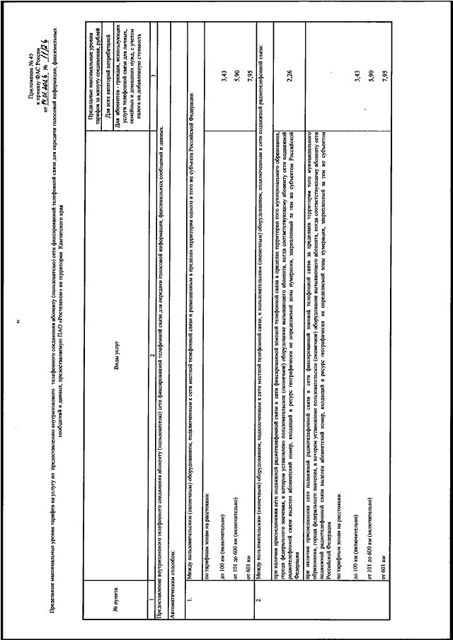 "ОБ УТВЕРЖДЕНИИ ПРЕДЕЛЬНЫХ МАКСИМАЛЬНЫХ УРОВНЕЙ ТАРИФОВ НА УСЛУГИ МЕСТНОЙ ТЕЛЕФОННОЙ СВЯЗИ, УСЛУГУ ПО ПРЕДОСТАВЛЕНИЮ ВНУТРИЗОНОВОГО ТЕЛЕФОННОГО СОЕДИНЕНИЯ АБОНЕНТУ (ПОЛЬЗОВАТЕЛЮ) СЕТИ ФИКСИРОВАННОЙ ТЕЛЕФОННОЙ СВЯЗИ ДЛЯ ПЕРЕДАЧИ ГОЛОСОВОЙ ИНФОРМАЦИИ, ФАКСИМИЛЬНЫХ СООБЩЕНИЙ И ДАННЫХ И ТАРИФОВ НА УСЛУГУ ПО ПЕРЕДАЧЕ ВНУТРЕННЕЙ ТЕЛЕГРАММЫ, ПРЕДОСТАВЛЯЕМЫЕ ПАО "РОСТЕЛЕКОМ"