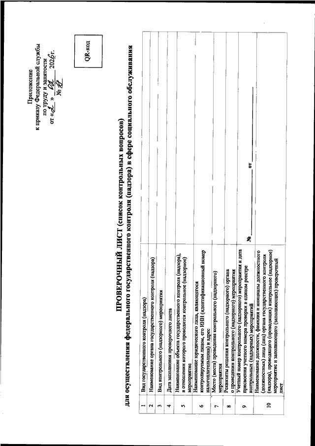 "ОБ УТВЕРЖДЕНИИ ФОРМЫ ПРОВЕРОЧНОГО ЛИСТА (СПИСКА КОНТРОЛЬНЫХ ВОПРОСОВ) ДЛЯ ОСУЩЕСТВЛЕНИЯ ФЕДЕРАЛЬНОГО ГОСУДАРСТВЕННОГО КОНТРОЛЯ (НАДЗОРА) В СФЕРЕ СОЦИАЛЬНОГО ОБСЛУЖИВАНИЯ"