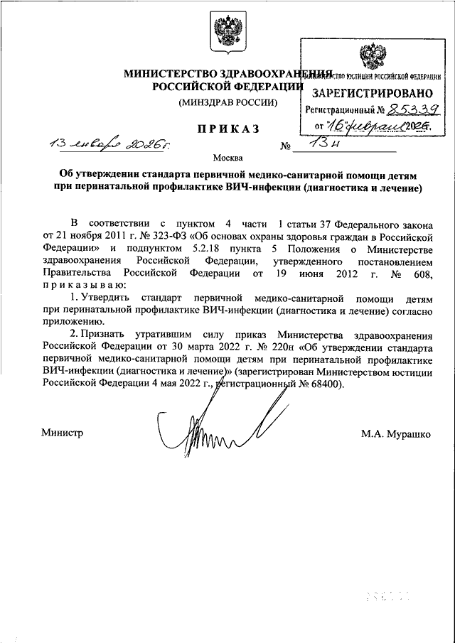 ПРИКАЗ Минздрава РФ от 13.01.2026 N 13н