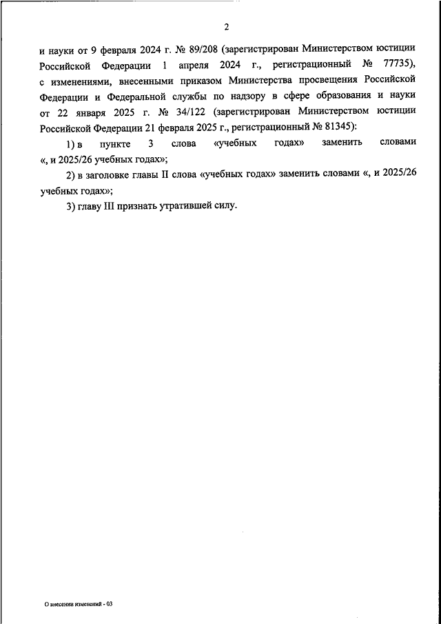 "О ВНЕСЕНИИ ИЗМЕНЕНИЙ В ОСОБЕННОСТИ ПРОВЕДЕНИЯ ГОСУДАРСТВЕННОЙ ИТОГОВОЙ АТТЕСТАЦИИ ПО ОБРАЗОВАТЕЛЬНЫМ ПРОГРАММАМ ОСНОВНОГО ОБЩЕГО И СРЕДНЕГО ОБЩЕГО ОБРАЗОВАНИЯ, ФОРМЫ ПРОВЕДЕНИЯ ГОСУДАРСТВЕННОЙ ИТОГОВОЙ АТТЕСТАЦИИ И УСЛОВИЯ ДОПУСКА К НЕЙ В 2023/24, 2024/25, 2025/26 УЧЕБНЫХ ГОДАХ, УТВЕРЖДЕННЫЕ ПРИКАЗОМ МИНИСТЕРСТВА ПРОСВЕЩЕНИЯ РОССИЙСКОЙ ФЕДЕРАЦИИ И ФЕДЕРАЛЬНОЙ СЛУЖБЫ ПО НАДЗОРУ В СФЕРЕ ОБРАЗОВАНИЯ И НАУКИ ОТ 9 ФЕВРАЛЯ 2024 Г. N 89/208"