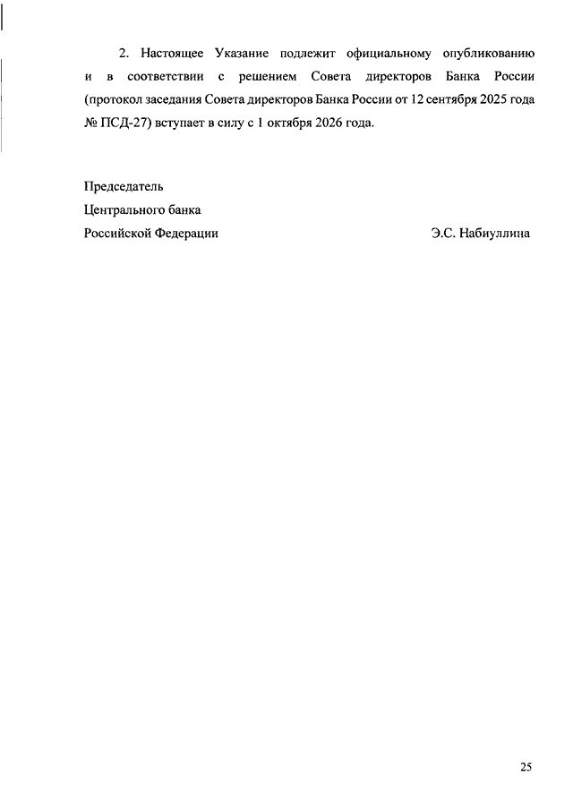 УКАЗАНИЕ ЦБ РФ от 28.10.2025 N 7220-У