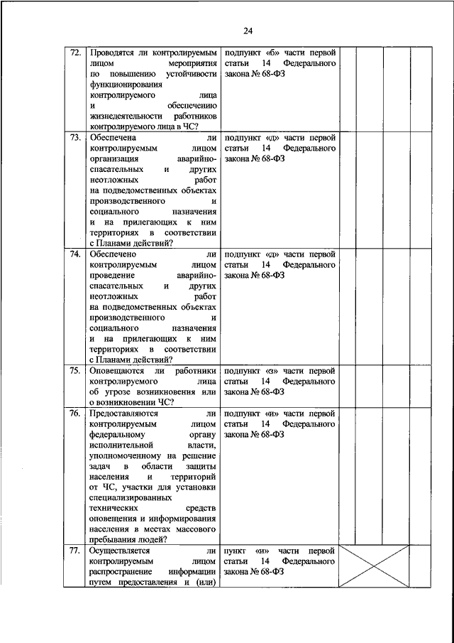 "ОБ УТВЕРЖДЕНИИ ФОРМЫ ПРОВЕРОЧНОГО ЛИСТА (СПИСКА КОНТРОЛЬНЫХ ВОПРОСОВ, ОТВЕТЫ НА КОТОРЫЕ СВИДЕТЕЛЬСТВУЮТ О СОБЛЮДЕНИИ ИЛИ НЕСОБЛЮДЕНИИ КОНТРОЛИРУЕМЫМ ЛИЦОМ ОБЯЗАТЕЛЬНЫХ ТРЕБОВАНИЙ), ПРИМЕНЯЕМОГО МИНИСТЕРСТВОМ РОССИЙСКОЙ ФЕДЕРАЦИИ ПО ДЕЛАМ ГРАЖДАНСКОЙ ОБОРОНЫ, ЧРЕЗВЫЧАЙНЫМ СИТУАЦИЯМ И ЛИКВИДАЦИИ ПОСЛЕДСТВИЙ СТИХИЙНЫХ БЕДСТВИЙ И ЕГО ТЕРРИТОРИАЛЬНЫМИ ОРГАНАМИ ПРИ ОСУЩЕСТВЛЕНИИ ФЕДЕРАЛЬНОГО ГОСУДАРСТВЕННОГО НАДЗОРА В ОБЛАСТИ ЗАЩИТЫ НАСЕЛЕНИЯ И ТЕРРИТОРИЙ ОТ ЧРЕЗВЫЧАЙНЫХ СИТУАЦИЙ"