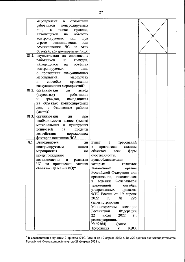 "ОБ УТВЕРЖДЕНИИ ФОРМЫ ПРОВЕРОЧНОГО ЛИСТА (СПИСКА КОНТРОЛЬНЫХ ВОПРОСОВ, ОТВЕТЫ НА КОТОРЫЕ СВИДЕТЕЛЬСТВУЮТ О СОБЛЮДЕНИИ ИЛИ НЕСОБЛЮДЕНИИ КОНТРОЛИРУЕМЫМ ЛИЦОМ ОБЯЗАТЕЛЬНЫХ ТРЕБОВАНИЙ), ПРИМЕНЯЕМОГО МИНИСТЕРСТВОМ РОССИЙСКОЙ ФЕДЕРАЦИИ ПО ДЕЛАМ ГРАЖДАНСКОЙ ОБОРОНЫ, ЧРЕЗВЫЧАЙНЫМ СИТУАЦИЯМ И ЛИКВИДАЦИИ ПОСЛЕДСТВИЙ СТИХИЙНЫХ БЕДСТВИЙ И ЕГО ТЕРРИТОРИАЛЬНЫМИ ОРГАНАМИ ПРИ ОСУЩЕСТВЛЕНИИ ФЕДЕРАЛЬНОГО ГОСУДАРСТВЕННОГО НАДЗОРА В ОБЛАСТИ ЗАЩИТЫ НАСЕЛЕНИЯ И ТЕРРИТОРИЙ ОТ ЧРЕЗВЫЧАЙНЫХ СИТУАЦИЙ"