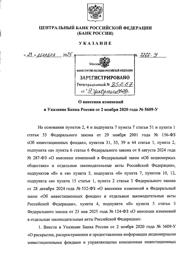 УКАЗАНИЕ ЦБ РФ от 23.12.2025 N 7266-У
