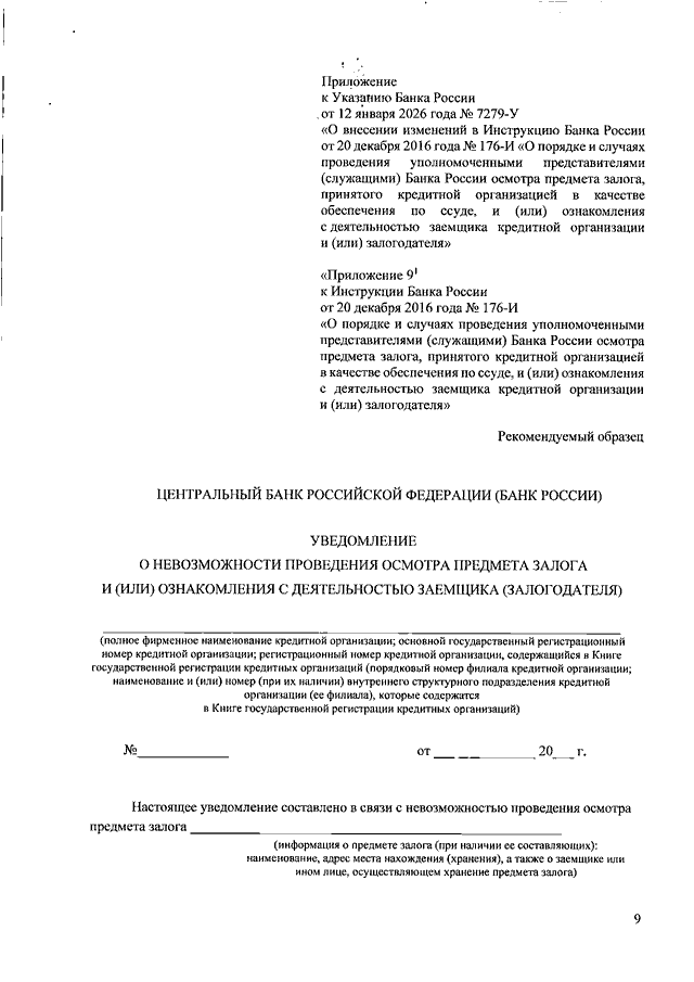 "О ВНЕСЕНИИ ИЗМЕНЕНИЙ В ИНСТРУКЦИЮ БАНКА РОССИИ ОТ 20 ДЕКАБРЯ 2016 Г. N 176-И "О ПОРЯДКЕ И СЛУЧАЯХ ПРОВЕДЕНИЯ УПОЛНОМОЧЕННЫМИ ПРЕДСТАВИТЕЛЯМИ (СЛУЖАЩИМИ) БАНКА РОССИИ ОСМОТРА ПРЕДМЕТА ЗАЛОГА, ПРИНЯТОГО КРЕДИТНОЙ ОРГАНИЗАЦИЕЙ В КАЧЕСТВЕ ОБЕСПЕЧЕНИЯ ПО ССУДЕ, И (ИЛИ) ОЗНАКОМЛЕНИЯ С ДЕЯТЕЛЬНОСТЬЮ ЗАЕМЩИКА КРЕДИТНОЙ ОРГАНИЗАЦИИ И (ИЛИ) ЗАЛОГОДАТЕЛЯ"