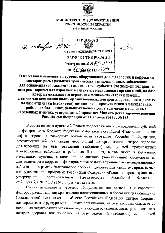 ПРИКАЗ Минздрава РФ от 12.01.2026 N 4н