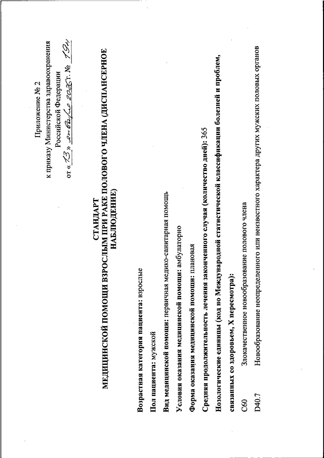 "ОБ УТВЕРЖДЕНИИ СТАНДАРТОВ МЕДИЦИНСКОЙ ПОМОЩИ ВЗРОСЛЫМ ПРИ РАКЕ ПОЛОВОГО ЧЛЕНА"
