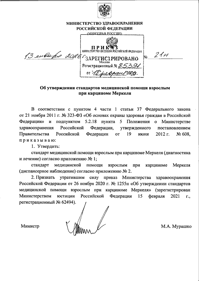 ПРИКАЗ Минздрава РФ от 13.01.2026 N 21н