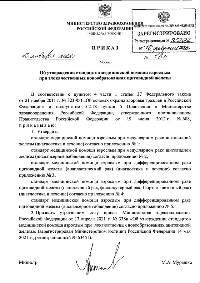 ПРИКАЗ Минздрава РФ от 13.01.2026 N 18н