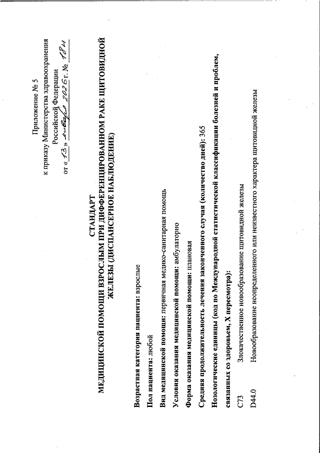 "ОБ УТВЕРЖДЕНИИ СТАНДАРТОВ МЕДИЦИНСКОЙ ПОМОЩИ ВЗРОСЛЫМ ПРИ ЗЛОКАЧЕСТВЕННЫХ НОВООБРАЗОВАНИЯХ ЩИТОВИДНОЙ ЖЕЛЕЗЫ"