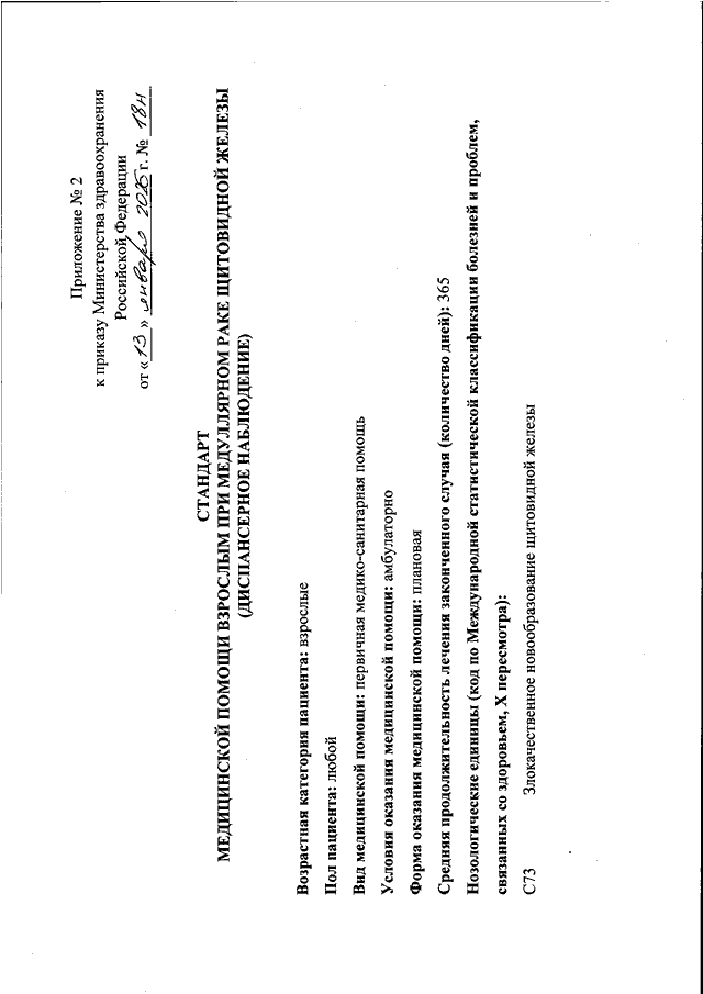 "ОБ УТВЕРЖДЕНИИ СТАНДАРТОВ МЕДИЦИНСКОЙ ПОМОЩИ ВЗРОСЛЫМ ПРИ ЗЛОКАЧЕСТВЕННЫХ НОВООБРАЗОВАНИЯХ ЩИТОВИДНОЙ ЖЕЛЕЗЫ"