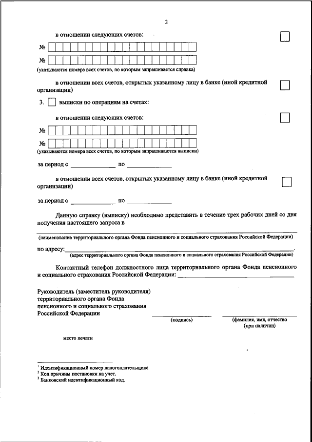 "ОБ УТВЕРЖДЕНИИ ПОРЯДКА НАПРАВЛЕНИЯ И ФОРМЫ ЗАПРОСА ТЕРРИТОРИАЛЬНОГО ОРГАНА ФОНДА ПЕНСИОННОГО И СОЦИАЛЬНОГО СТРАХОВАНИЯ РОССИЙСКОЙ ФЕДЕРАЦИИ В БАНК (ИНУЮ КРЕДИТНУЮ ОРГАНИЗАЦИЮ)"