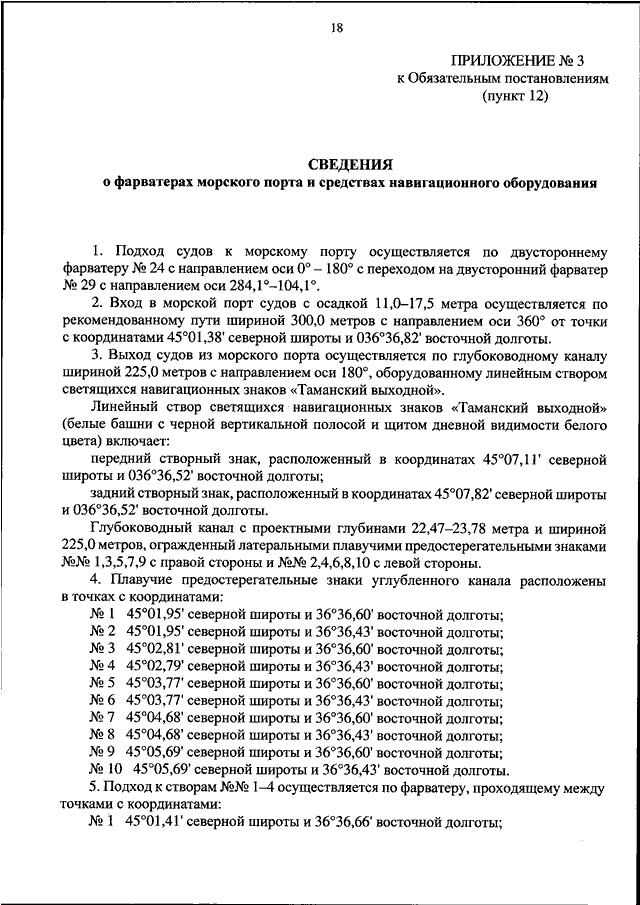 "ОБ УТВЕРЖДЕНИИ ОБЯЗАТЕЛЬНЫХ ПОСТАНОВЛЕНИЙ В МОРСКОМ ПОРТУ ТАМАНЬ"