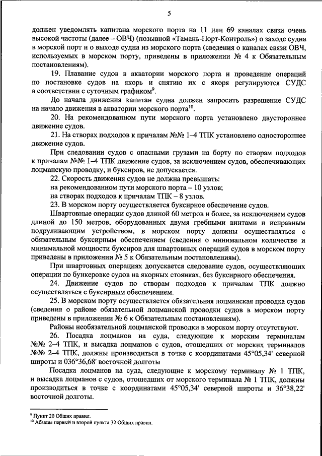 "ОБ УТВЕРЖДЕНИИ ОБЯЗАТЕЛЬНЫХ ПОСТАНОВЛЕНИЙ В МОРСКОМ ПОРТУ ТАМАНЬ"