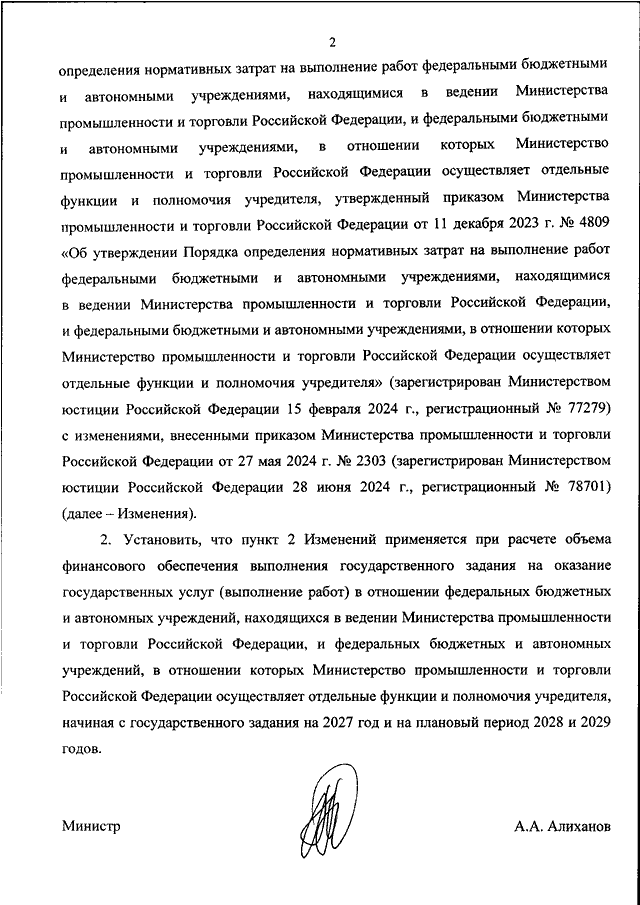 "О ВНЕСЕНИИ ИЗМЕНЕНИЙ В ПОРЯДОК ОПРЕДЕЛЕНИЯ НОРМАТИВНЫХ ЗАТРАТ НА ВЫПОЛНЕНИЕ РАБОТ ФЕДЕРАЛЬНЫМИ БЮДЖЕТНЫМИ И АВТОНОМНЫМИ УЧРЕЖДЕНИЯМИ, НАХОДЯЩИМИСЯ В ВЕДЕНИИ МИНИСТЕРСТВА ПРОМЫШЛЕННОСТИ И ТОРГОВЛИ РОССИЙСКОЙ ФЕДЕРАЦИИ, И ФЕДЕРАЛЬНЫМИ БЮДЖЕТНЫМИ И АВТОНОМНЫМИ УЧРЕЖДЕНИЯМИ, В ОТНОШЕНИИ КОТОРЫХ МИНИСТЕРСТВО ПРОМЫШЛЕННОСТИ И ТОРГОВЛИ РОССИЙСКОЙ ФЕДЕРАЦИИ ОСУЩЕСТВЛЯЕТ ОТДЕЛЬНЫЕ ФУНКЦИИ И ПОЛНОМОЧИЯ УЧРЕДИТЕЛЯ, УТВЕРЖДЕННЫЙ ПРИКАЗОМ МИНИСТЕРСТВА ПРОМЫШЛЕННОСТИ И ТОРГОВЛИ РОССИЙСКОЙ ФЕДЕРАЦИИ ОТ 11 ДЕКАБРЯ 2023 Г. N 4809"