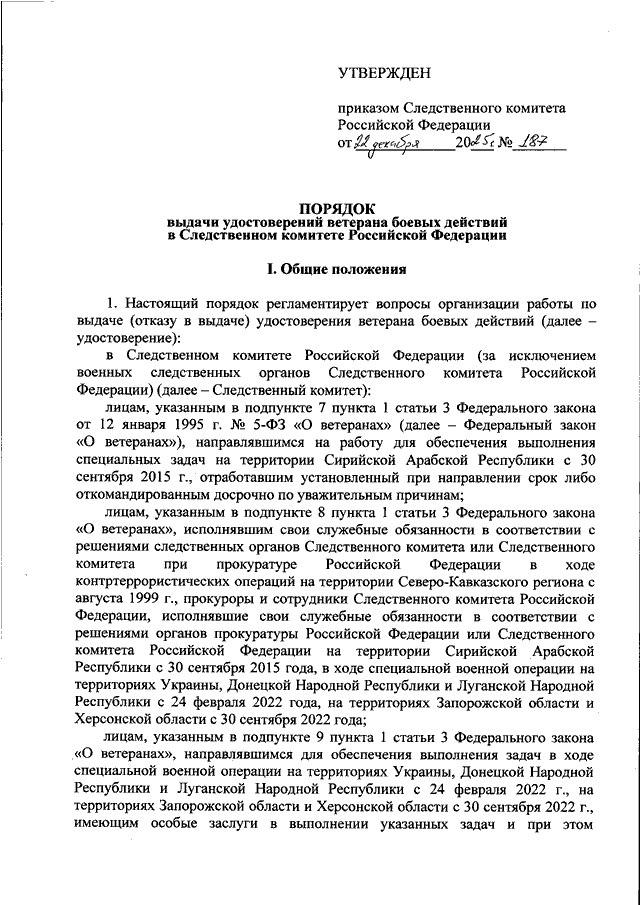 ПРИКАЗ Следственного комитета РФ от 22.12.2025 N 187