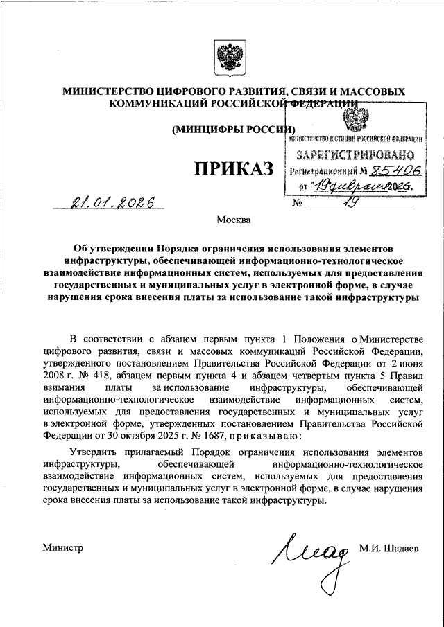 ПРИКАЗ Минцифры России от 21.01.2026 N 19