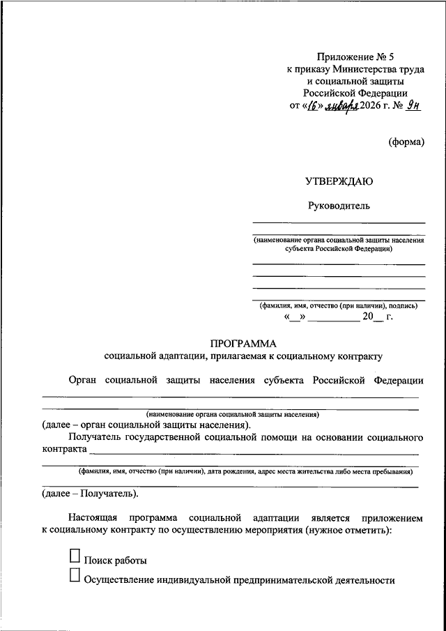 ПРИКАЗ Минтруда РФ от 16.01.2026 N 9н