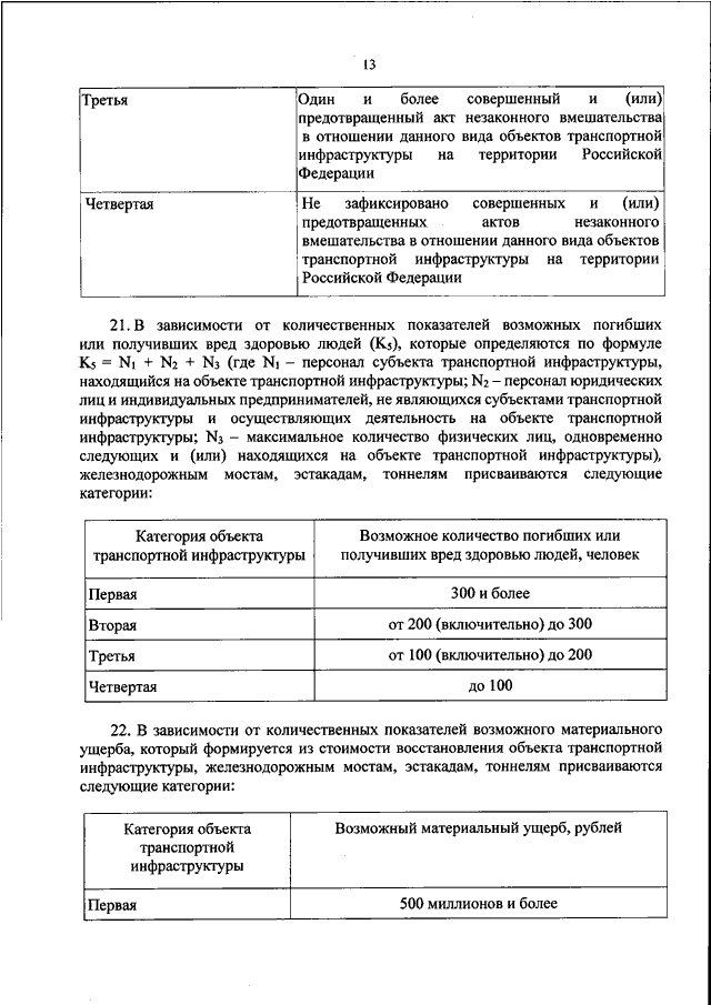 "ОБ ОПРЕДЕЛЕНИИ КОЛИЧЕСТВА КАТЕГОРИЙ ОБЪЕКТОВ ТРАНСПОРТНОЙ ИНФРАСТРУКТУРЫ, КРИТЕРИЕВ КАТЕГОРИРОВАНИЯ ОБЪЕКТОВ ТРАНСПОРТНОЙ ИНФРАСТРУКТУРЫ И ИХ КОЛИЧЕСТВЕННЫХ ПОКАЗАТЕЛЕЙ ПО ВИДАМ ТРАНСПОРТА"