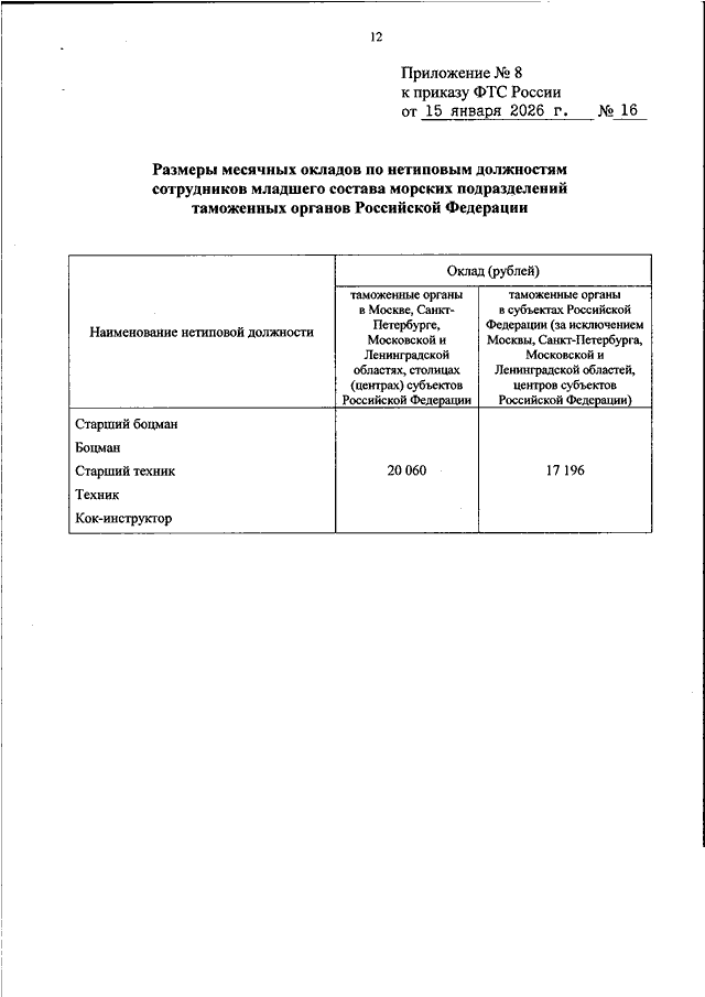 "ОБ УСТАНОВЛЕНИИ РАЗМЕРОВ МЕСЯЧНЫХ ОКЛАДОВ ПО НЕТИПОВЫМ ДОЛЖНОСТЯМ СОТРУДНИКОВ ТАМОЖЕННЫХ ОРГАНОВ РОССИЙСКОЙ ФЕДЕРАЦИИ"