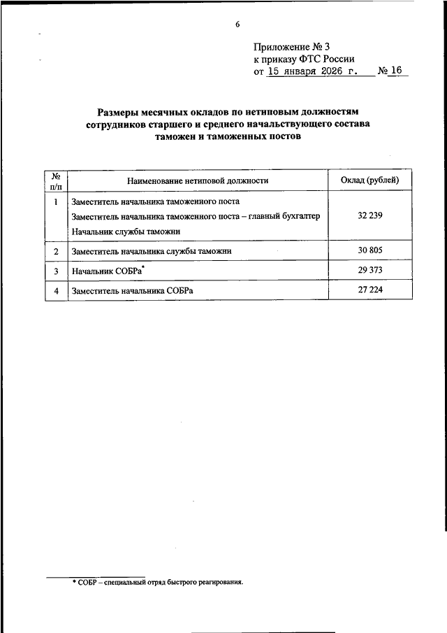 "ОБ УСТАНОВЛЕНИИ РАЗМЕРОВ МЕСЯЧНЫХ ОКЛАДОВ ПО НЕТИПОВЫМ ДОЛЖНОСТЯМ СОТРУДНИКОВ ТАМОЖЕННЫХ ОРГАНОВ РОССИЙСКОЙ ФЕДЕРАЦИИ"