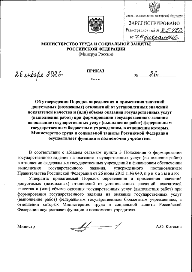 ПРИКАЗ Минтруда РФ от 26.01.2026 N 26н