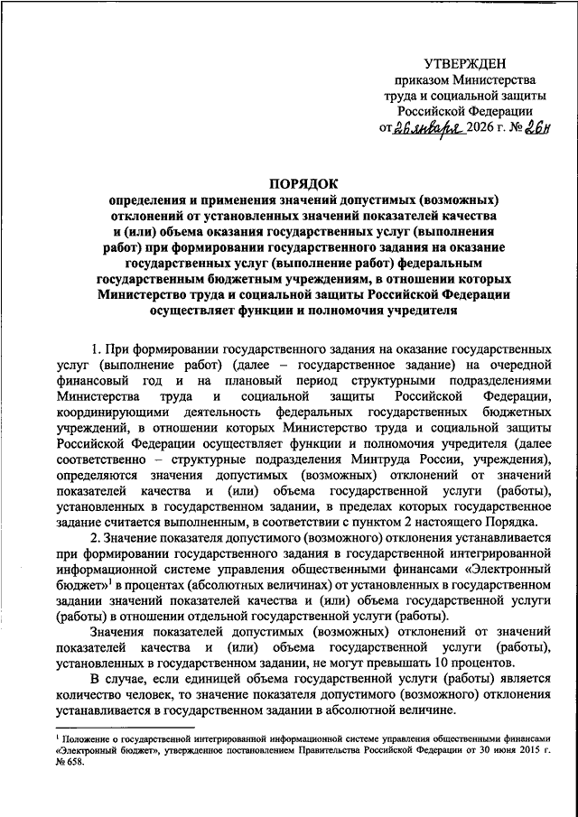 ПРИКАЗ Минтруда РФ от 26.01.2026 N 26н