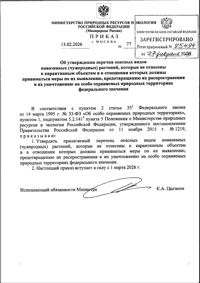 ПРИКАЗ Минприроды РФ от 13.02.2026 N 77