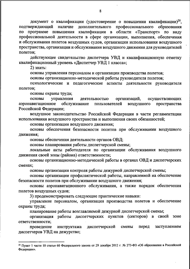 "ОБ УТВЕРЖДЕНИИ ФЕДЕРАЛЬНЫХ АВИАЦИОННЫХ ПРАВИЛ "ТРЕБОВАНИЯ К СПЕЦИАЛИСТАМ АВИАЦИОННОГО ПЕРСОНАЛА, ОСУЩЕСТВЛЯЮЩИМ ДЕЯТЕЛЬНОСТЬ ПО ОРГАНИЗАЦИИ ИСПОЛЬЗОВАНИЯ ВОЗДУШНОГО ПРОСТРАНСТВА, ОРГАНИЗАЦИИ И ОБСЛУЖИВАНИЮ ВОЗДУШНОГО ДВИЖЕНИЯ"