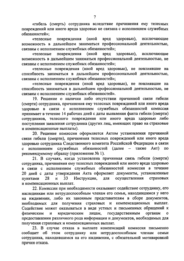 "О ПОРЯДКЕ ОРГАНИЗАЦИИ ОБЯЗАТЕЛЬНОГО ГОСУДАРСТВЕННОГО ЛИЧНОГО СТРАХОВАНИЯ СОТРУДНИКОВ СЛЕДСТВЕННОГО КОМИТЕТА РОССИЙСКОЙ ФЕДЕРАЦИИ, ОФОРМЛЕНИЯ ДОКУМЕНТОВ И ВЫПЛАТЫ СТРАХОВЫХ СУММ И КОМПЕНСАЦИЙ"