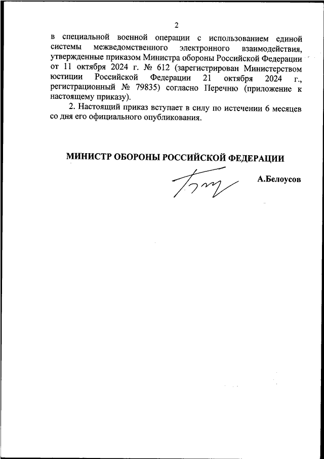 "О ВНЕСЕНИИ ИЗМЕНЕНИЙ В ПОРЯДОК ВЫДАЧИ В МИНИСТЕРСТВЕ ОБОРОНЫ РОССИЙСКОЙ ФЕДЕРАЦИИ СПРАВКИ, ПОДТВЕРЖДАЮЩЕЙ ФАКТ УЧАСТИЯ ГРАЖДАН РОССИЙСКОЙ ФЕДЕРАЦИИ В СПЕЦИАЛЬНОЙ ВОЕННОЙ ОПЕРАЦИИ НА ТЕРРИТОРИЯХ УКРАИНЫ, ДОНЕЦКОЙ НАРОДНОЙ РЕСПУБЛИКИ, ЛУГАНСКОЙ НАРОДНОЙ РЕСПУБЛИКИ, ЗАПОРОЖСКОЙ ОБЛАСТИ И ХЕРСОНСКОЙ ОБЛАСТИ, И ПОРЯДОК ПРЕДОСТАВЛЕНИЯ СВЕДЕНИЙ МИНИСТЕРСТВОМ ОБОРОНЫ РОССИЙСКОЙ ФЕДЕРАЦИИ ОБ УЧАСТИИ В СПЕЦИАЛЬНОЙ ВОЕННОЙ ОПЕРАЦИИ С ИСПОЛЬЗОВАНИЕМ ЕДИНОЙ СИСТЕМЫ МЕЖВЕДОМСТВЕННОГО ЭЛЕКТРОННОГО ВЗАИМОДЕЙСТВИЯ, УТВЕРЖДЕННЫЕ ПРИКАЗОМ МИНИСТРА ОБОРОНЫ РОССИЙСКОЙ ФЕДЕРАЦИИ ОТ 11 ОКТЯБРЯ 2024 Г. N 612"