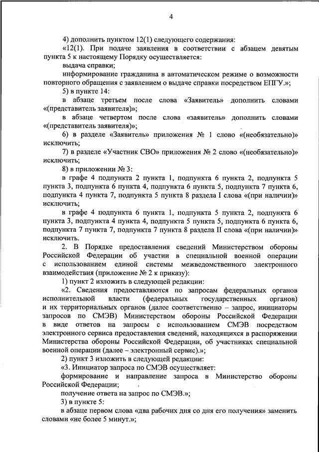 "О ВНЕСЕНИИ ИЗМЕНЕНИЙ В ПОРЯДОК ВЫДАЧИ В МИНИСТЕРСТВЕ ОБОРОНЫ РОССИЙСКОЙ ФЕДЕРАЦИИ СПРАВКИ, ПОДТВЕРЖДАЮЩЕЙ ФАКТ УЧАСТИЯ ГРАЖДАН РОССИЙСКОЙ ФЕДЕРАЦИИ В СПЕЦИАЛЬНОЙ ВОЕННОЙ ОПЕРАЦИИ НА ТЕРРИТОРИЯХ УКРАИНЫ, ДОНЕЦКОЙ НАРОДНОЙ РЕСПУБЛИКИ, ЛУГАНСКОЙ НАРОДНОЙ РЕСПУБЛИКИ, ЗАПОРОЖСКОЙ ОБЛАСТИ И ХЕРСОНСКОЙ ОБЛАСТИ, И ПОРЯДОК ПРЕДОСТАВЛЕНИЯ СВЕДЕНИЙ МИНИСТЕРСТВОМ ОБОРОНЫ РОССИЙСКОЙ ФЕДЕРАЦИИ ОБ УЧАСТИИ В СПЕЦИАЛЬНОЙ ВОЕННОЙ ОПЕРАЦИИ С ИСПОЛЬЗОВАНИЕМ ЕДИНОЙ СИСТЕМЫ МЕЖВЕДОМСТВЕННОГО ЭЛЕКТРОННОГО ВЗАИМОДЕЙСТВИЯ, УТВЕРЖДЕННЫЕ ПРИКАЗОМ МИНИСТРА ОБОРОНЫ РОССИЙСКОЙ ФЕДЕРАЦИИ ОТ 11 ОКТЯБРЯ 2024 Г. N 612"