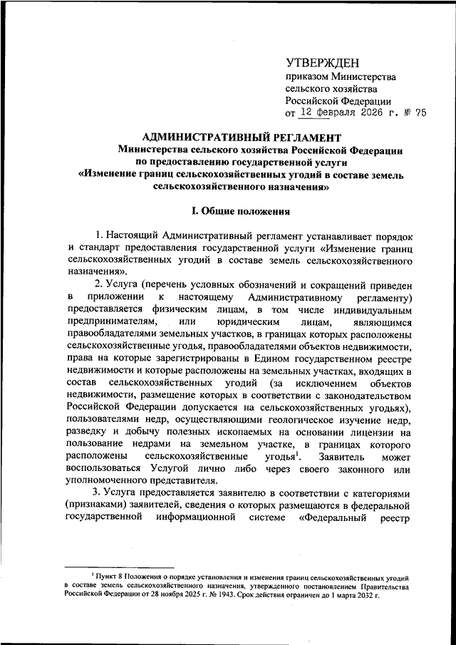 ПРИКАЗ Минсельхоза РФ от 12.02.2026 N 75
