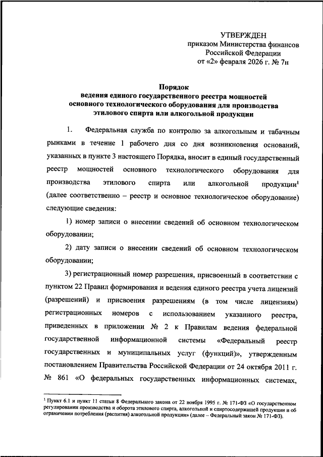 ПРИКАЗ Минфина РФ от 02.02.2026 N 7н