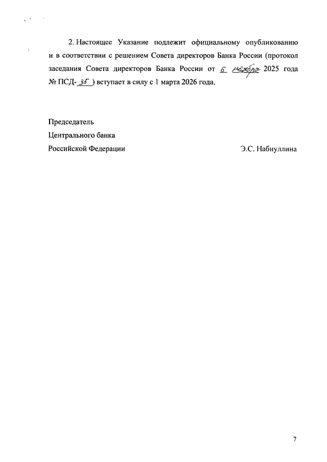 УКАЗАНИЕ ЦБ РФ от 11.11.2025 N 7237-У