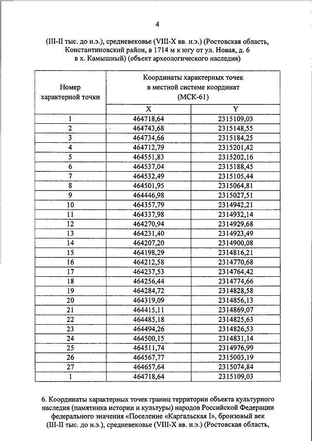 "О ВКЛЮЧЕНИИ ВЫЯВЛЕННЫХ ОБЪЕКТОВ КУЛЬТУРНОГО НАСЛЕДИЯ (ПАМЯТНИКОВ ИСТОРИИ И КУЛЬТУРЫ) НАРОДОВ РОССИЙСКОЙ ФЕДЕРАЦИИ (ОБЪЕКТОВ АРХЕОЛОГИЧЕСКОГО НАСЛЕДИЯ), РАСПОЛОЖЕННЫХ НА ТЕРРИТОРИИ ВОЛГОДОНСКОГО РАЙОНА, КОНСТАНТИНОВСКОГО РАЙОНА, КРАСНОСУЛИНСКОГО РАЙОНА, МАТВЕЕВО - КУРГАНСКОГО РАЙОНА, МЯСНИКОВСКОГО РАЙОНА, ОКТЯБРЬСКОГО РАЙОНА, ПРОЛЕТАРСКОГО РАЙОНА РОСТОВСКОЙ ОБЛАСТИ, В ЕДИНЫЙ ГОСУДАРСТВЕННЫЙ РЕЕСТР ОБЪЕКТОВ КУЛЬТУРНОГО НАСЛЕДИЯ ПАМЯТНИКОВ ИСТОРИИ И КУЛЬТУРЫ) НАРОДОВ РОССИЙСКОЙ ФЕДЕРАЦИИ В КАЧЕСТВЕ ОБЪЕКТОВ КУЛЬТУРНОГО НАСЛЕДИЯ (ПАМЯТНИКОВ ИСТОРИИ И КУЛЬТУРЫ) НАРОДОВ РОССИЙСКОЙ ФЕДЕРАЦИИ ФЕДЕРАЛЬНОГО ЗНАЧЕНИЯ И УТВЕРЖДЕНИИ ГРАНИЦ ИХ ТЕРРИТОРИЙ"