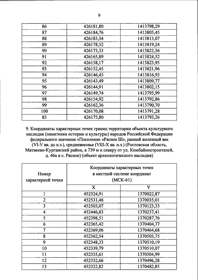 "О ВКЛЮЧЕНИИ ВЫЯВЛЕННЫХ ОБЪЕКТОВ КУЛЬТУРНОГО НАСЛЕДИЯ (ПАМЯТНИКОВ ИСТОРИИ И КУЛЬТУРЫ) НАРОДОВ РОССИЙСКОЙ ФЕДЕРАЦИИ (ОБЪЕКТОВ АРХЕОЛОГИЧЕСКОГО НАСЛЕДИЯ), РАСПОЛОЖЕННЫХ НА ТЕРРИТОРИИ ВОЛГОДОНСКОГО РАЙОНА, КОНСТАНТИНОВСКОГО РАЙОНА, КРАСНОСУЛИНСКОГО РАЙОНА, МАТВЕЕВО - КУРГАНСКОГО РАЙОНА, МЯСНИКОВСКОГО РАЙОНА, ОКТЯБРЬСКОГО РАЙОНА, ПРОЛЕТАРСКОГО РАЙОНА РОСТОВСКОЙ ОБЛАСТИ, В ЕДИНЫЙ ГОСУДАРСТВЕННЫЙ РЕЕСТР ОБЪЕКТОВ КУЛЬТУРНОГО НАСЛЕДИЯ ПАМЯТНИКОВ ИСТОРИИ И КУЛЬТУРЫ) НАРОДОВ РОССИЙСКОЙ ФЕДЕРАЦИИ В КАЧЕСТВЕ ОБЪЕКТОВ КУЛЬТУРНОГО НАСЛЕДИЯ (ПАМЯТНИКОВ ИСТОРИИ И КУЛЬТУРЫ) НАРОДОВ РОССИЙСКОЙ ФЕДЕРАЦИИ ФЕДЕРАЛЬНОГО ЗНАЧЕНИЯ И УТВЕРЖДЕНИИ ГРАНИЦ ИХ ТЕРРИТОРИЙ"