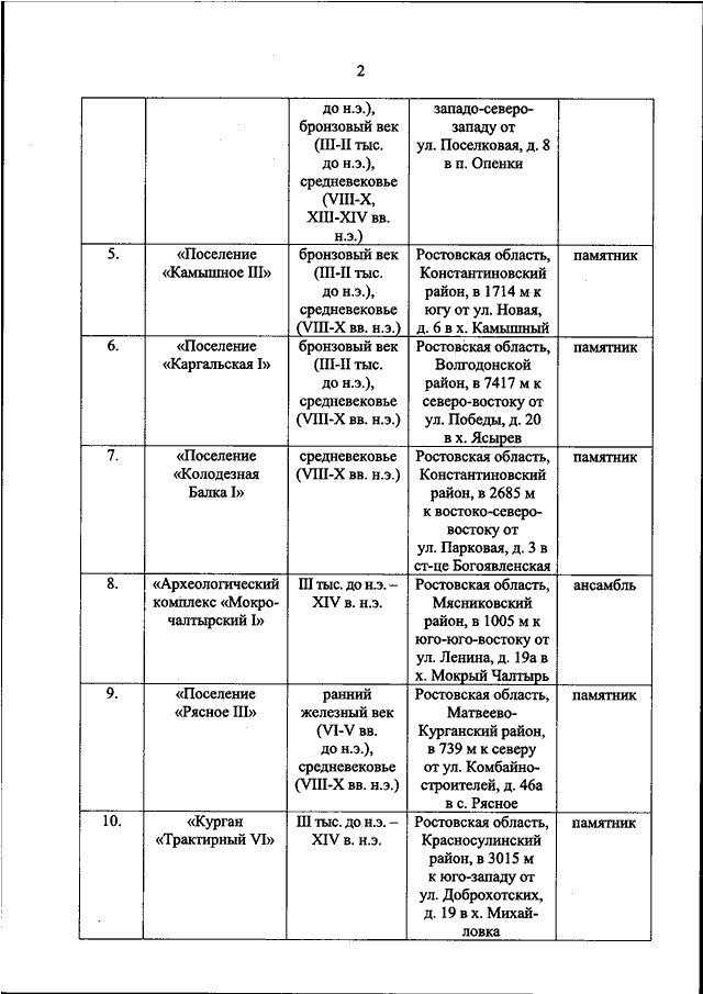 "О ВКЛЮЧЕНИИ ВЫЯВЛЕННЫХ ОБЪЕКТОВ КУЛЬТУРНОГО НАСЛЕДИЯ (ПАМЯТНИКОВ ИСТОРИИ И КУЛЬТУРЫ) НАРОДОВ РОССИЙСКОЙ ФЕДЕРАЦИИ (ОБЪЕКТОВ АРХЕОЛОГИЧЕСКОГО НАСЛЕДИЯ), РАСПОЛОЖЕННЫХ НА ТЕРРИТОРИИ ВОЛГОДОНСКОГО РАЙОНА, КОНСТАНТИНОВСКОГО РАЙОНА, КРАСНОСУЛИНСКОГО РАЙОНА, МАТВЕЕВО - КУРГАНСКОГО РАЙОНА, МЯСНИКОВСКОГО РАЙОНА, ОКТЯБРЬСКОГО РАЙОНА, ПРОЛЕТАРСКОГО РАЙОНА РОСТОВСКОЙ ОБЛАСТИ, В ЕДИНЫЙ ГОСУДАРСТВЕННЫЙ РЕЕСТР ОБЪЕКТОВ КУЛЬТУРНОГО НАСЛЕДИЯ ПАМЯТНИКОВ ИСТОРИИ И КУЛЬТУРЫ) НАРОДОВ РОССИЙСКОЙ ФЕДЕРАЦИИ В КАЧЕСТВЕ ОБЪЕКТОВ КУЛЬТУРНОГО НАСЛЕДИЯ (ПАМЯТНИКОВ ИСТОРИИ И КУЛЬТУРЫ) НАРОДОВ РОССИЙСКОЙ ФЕДЕРАЦИИ ФЕДЕРАЛЬНОГО ЗНАЧЕНИЯ И УТВЕРЖДЕНИИ ГРАНИЦ ИХ ТЕРРИТОРИЙ"