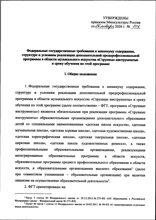 ПРИКАЗ Минкультуры РФ от 26.01.2026 N 106