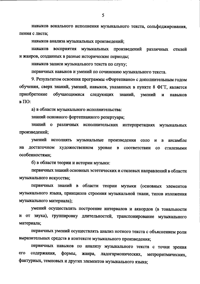 "ОБ УТВЕРЖДЕНИИ ФЕДЕРАЛЬНЫХ ГОСУДАРСТВЕННЫХ ТРЕБОВАНИЙ К МИНИМУМУ СОДЕРЖАНИЯ, СТРУКТУРЕ И УСЛОВИЯМ РЕАЛИЗАЦИИ ДОПОЛНИТЕЛЬНОЙ ПРЕДПРОФЕССИОНАЛЬНОЙ ПРОГРАММЫ В ОБЛАСТИ МУЗЫКАЛЬНОГО ИСКУССТВА, "ФОРТЕПИАНО" И СРОКУ ОБУЧЕНИЯ ПО ЭТОЙ ПРОГРАММЕ"
