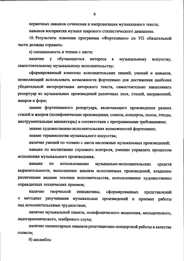 "ОБ УТВЕРЖДЕНИИ ФЕДЕРАЛЬНЫХ ГОСУДАРСТВЕННЫХ ТРЕБОВАНИЙ К МИНИМУМУ СОДЕРЖАНИЯ, СТРУКТУРЕ И УСЛОВИЯМ РЕАЛИЗАЦИИ ДОПОЛНИТЕЛЬНОЙ ПРЕДПРОФЕССИОНАЛЬНОЙ ПРОГРАММЫ В ОБЛАСТИ МУЗЫКАЛЬНОГО ИСКУССТВА, "ФОРТЕПИАНО" И СРОКУ ОБУЧЕНИЯ ПО ЭТОЙ ПРОГРАММЕ"