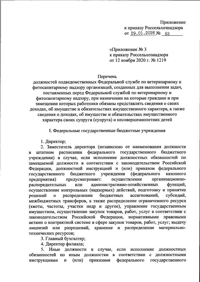 ПРИКАЗ Россельхознадзора от 29.01.2026 N 83