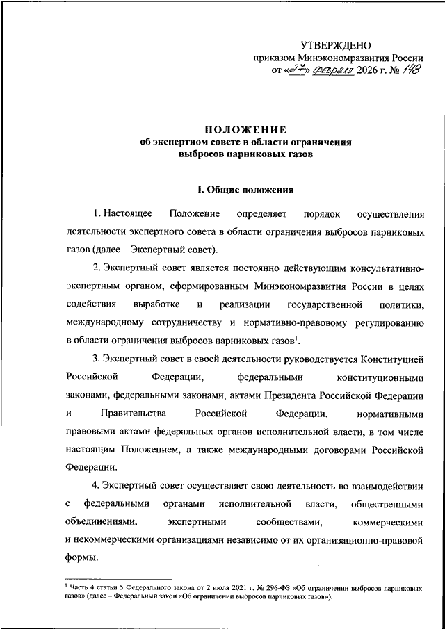 "ОБ УТВЕРЖДЕНИИ ПОЛОЖЕНИЯ ОБ ЭКСПЕРТНОМ СОВЕТЕ В ОБЛАСТИ ОГРАНИЧЕНИЯ ВЫБРОСОВ ПАРНИКОВЫХ ГАЗОВ"
