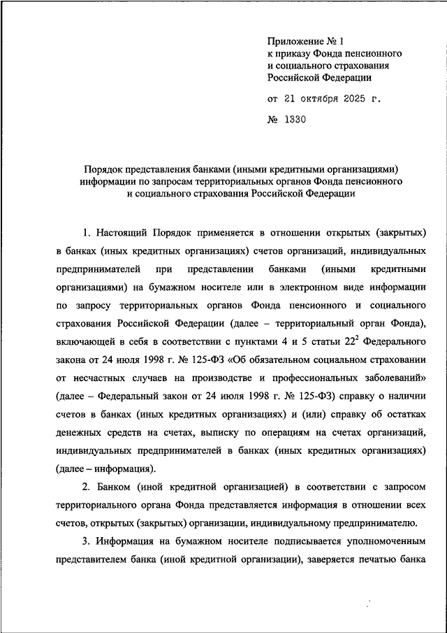 ПРИКАЗ СФР от 21.10.2025 N 1330